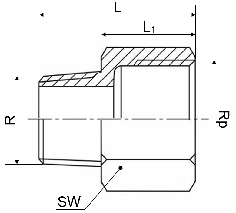 Die Schlüsselfläche des Muffennippels, die für die Installation mittels Werkzeug entscheidend ist, variiert je nach Größe des Nippels. Diese Flexibilität gewährleistet eine einfache und passgenaue Montage in unterschiedlichsten Einsatzbereichen.